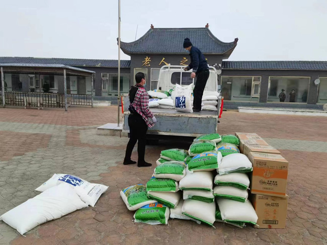 1月14日上午,紫光集团行政副总周冶、集团综合部部长张莹、物业公司总经理杜志刚代表我集团再次来到了东花养老院,为这里的老人们送去豆油、大米、白面等物资,为他们传递着冬日里的温暖与真情。