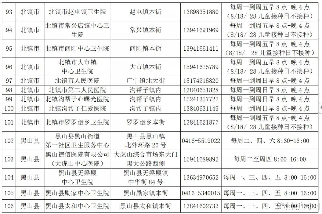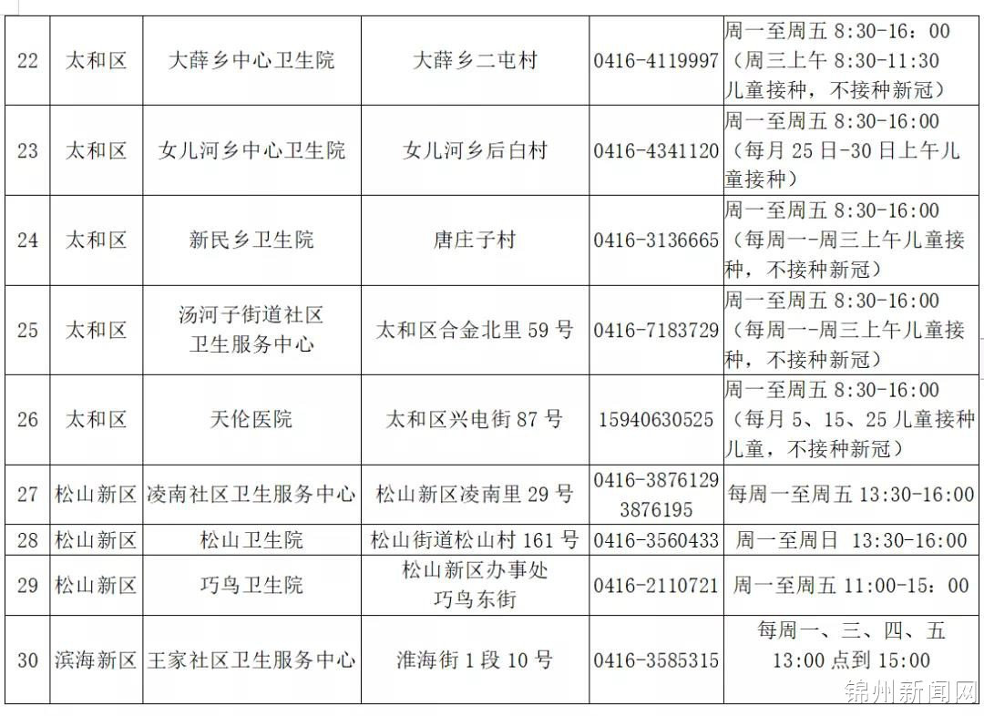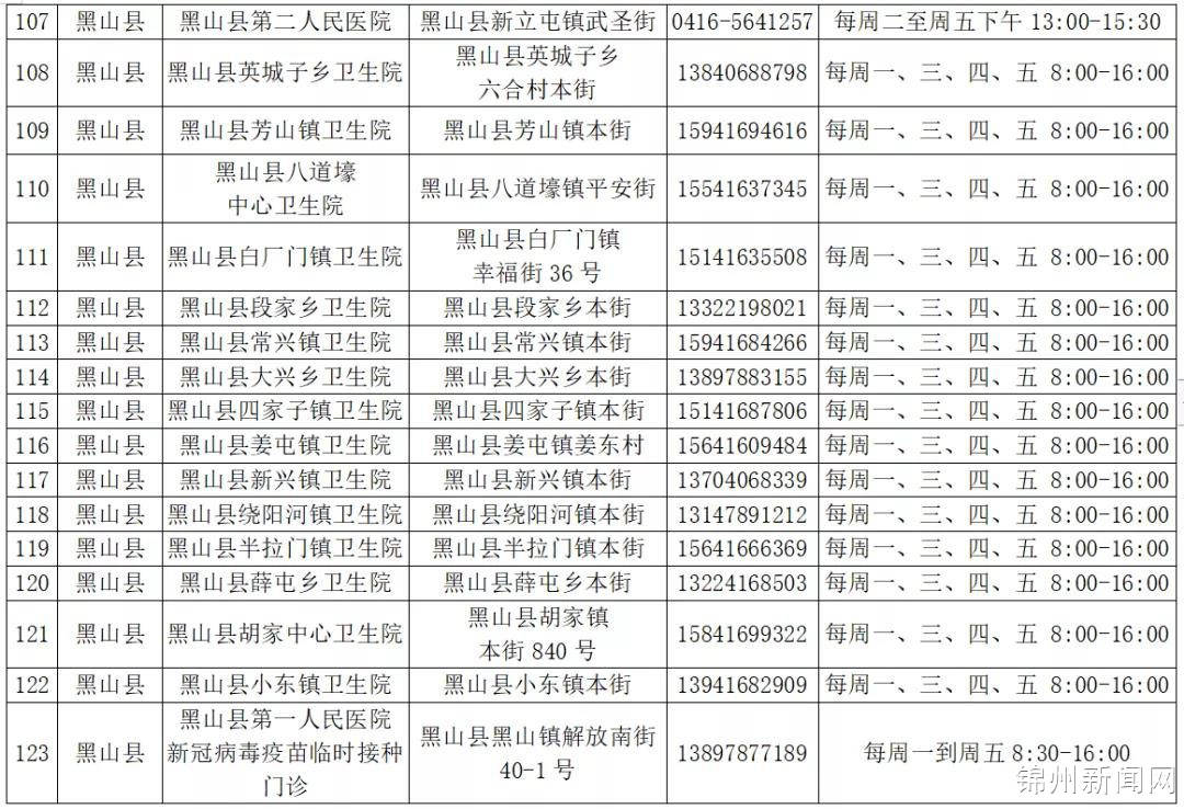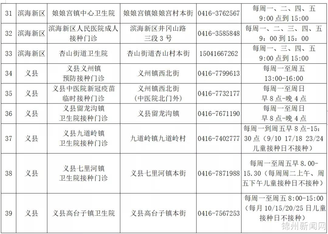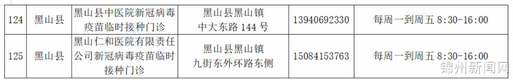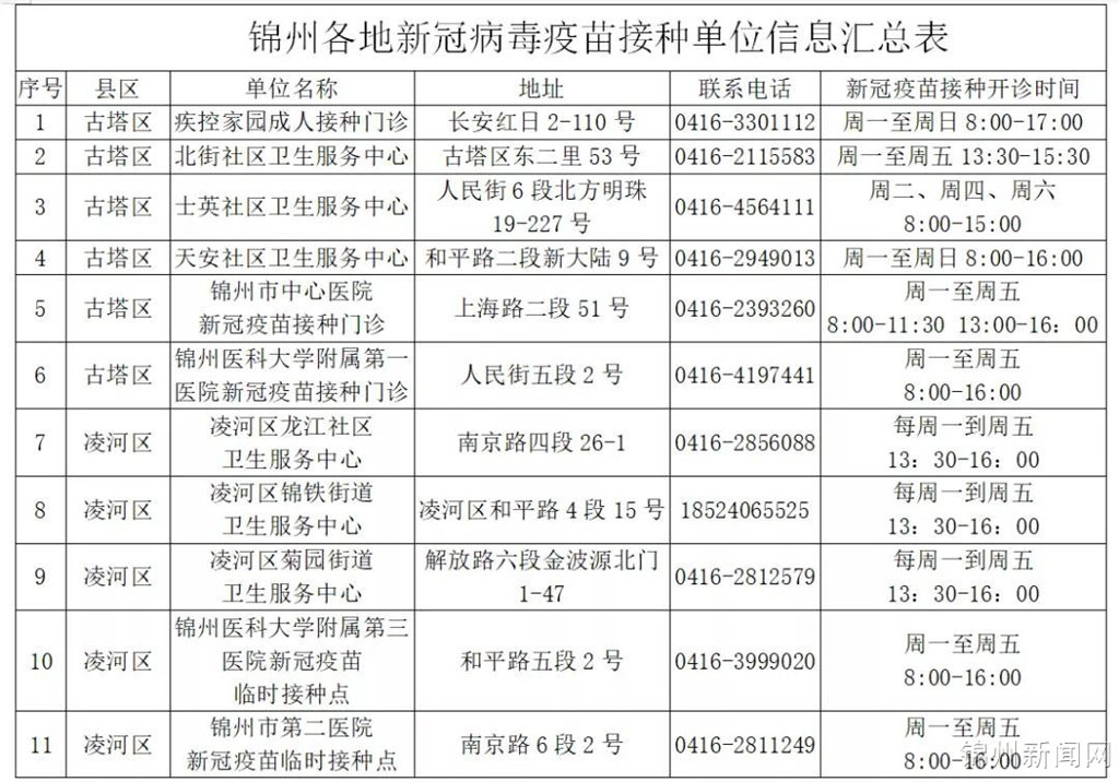 锦州125家新冠疫苗接种点全部开放(附最新名单)