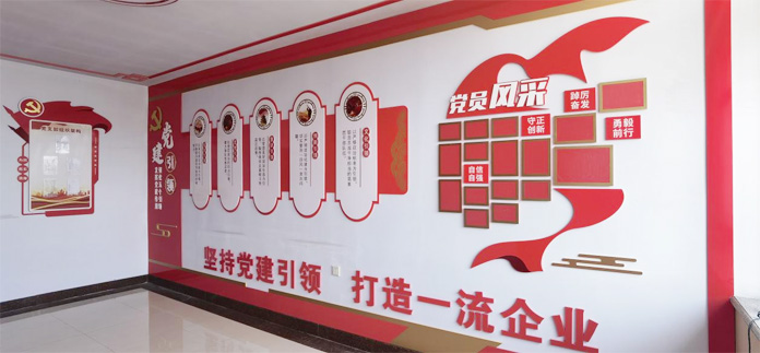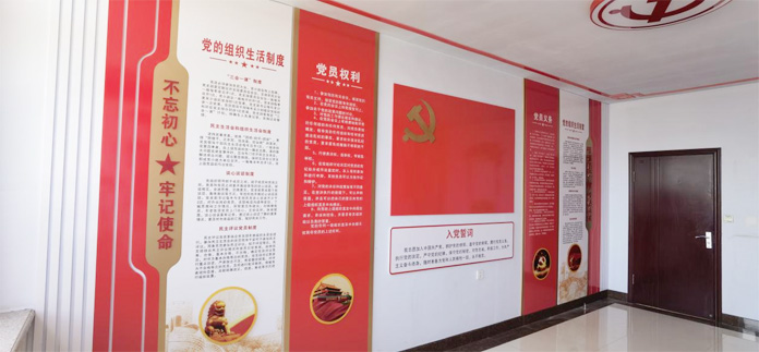 党员活动室布局以党旗和入党誓词为中心,以党旗红为主色调。墙上布置有党员权利、党员义务、党的组织生活制度、党建引领、党员风采、党支部组织架构等专题板块,全方位为党支部开展活动创造条件,营造浓厚党建活动氛围,提升党员认同感和归属感,成为集团公司开展党建工作、加强党性教育、提高党员素质的重要活动场所。