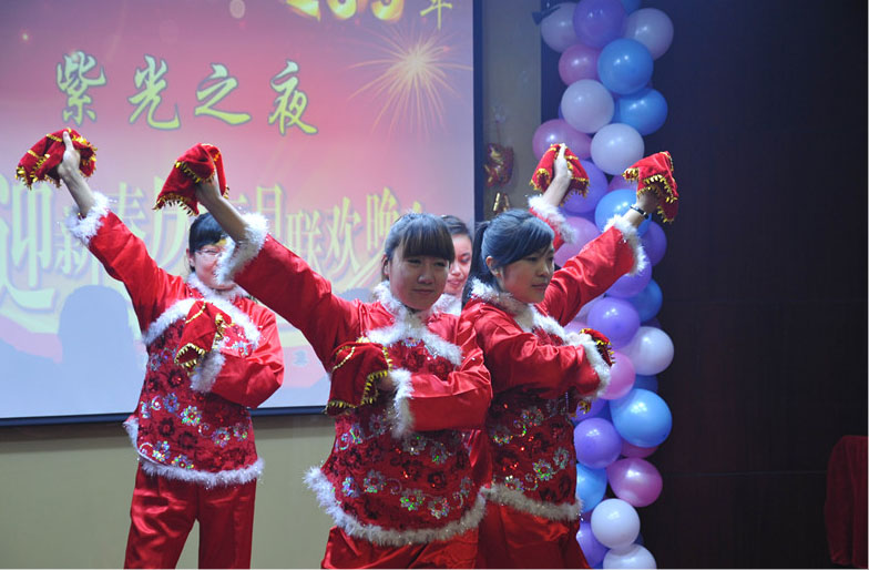 一曲红遍大江南北的“开门红”民族舞拉开了晚会的帷幕。首先,我们全体员工观看一段VCR大拜年,这是集团董事长及各子公司中给我们带来的新年祝福,这段VCR满载着紫光人对集团未来的期望与祝福。接下来,一曲男声独唱“朋友的酒”正式拉开了晚会演出的序幕.