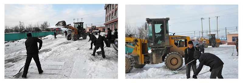 2012年12月2日晚,我市迎来了今冬最大的一场雪,降雪量达到10cm左右,地面积雪对公司车辆交通造成很大不便。2012年12月3日清晨寒风凛冽,天气虽然很冷,一大早集团各部门部长就带领着所有的员工在雪地中劳动,集团各位领导也在百忙之中参加这次扫雪活动。工程公司派出两台铲车,帮助集团清运积雪。大家充分发挥团队精神,展现集体合作力量,我们的员工用铁铲、扫帚等工具开辟出了一条通畅的道路。